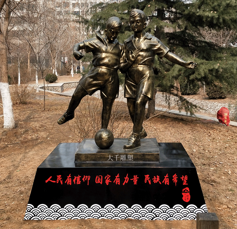 雕塑一直在人們生活中存在,我們經(jīng)常看到很多銅雕像、鑄銅雕塑,其實些絕大部分并不是什么真正的銅質(zhì)雕塑工藝產(chǎn)品,而是用玻璃鋼仿銅雕塑產(chǎn)品,仿鍛銅雕廠通過玻璃鋼生產(chǎn)工藝就可以用玻璃鋼做成各種仿銅制品。首先是將玻璃鋼造型做好后,用砂紙把表面打磨一遍;然后過渡底漆,刷涂1-2遍淺黃色雙組份底漆,干燥12-24小時;再用涂刷兩遍仿紫銅漆(顏色要根據(jù)用戶要求調(diào)制);最后涂一遍罩光漆。這樣一款玻璃鋼仿銅雕塑就做好了,不走近仔細觀察根本看不出是不是銅的,玻璃鋼仿銅雕塑比起真正的銅雕塑,成本可是天壤之別。