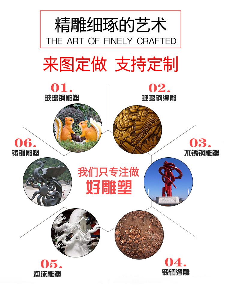 不銹鋼的優(yōu)點(diǎn),表面處理:不銹鋼雕塑本身的顏色銀白色,具有光澤。也可根據(jù)需求為雕塑上不同的顏色,一般為汽車漆。本產(chǎn)品適于公園、植物園、花園、住宅區(qū)、廣場(chǎng)、商場(chǎng)、酒店、賓館、會(huì)館等室外、內(nèi)場(chǎng)所。不銹鋼材質(zhì)優(yōu)點(diǎn):不易生銹,易清潔,且抗風(fēng)能力強(qiáng),經(jīng)久耐用,成為現(xiàn)代城市雕塑的主流。